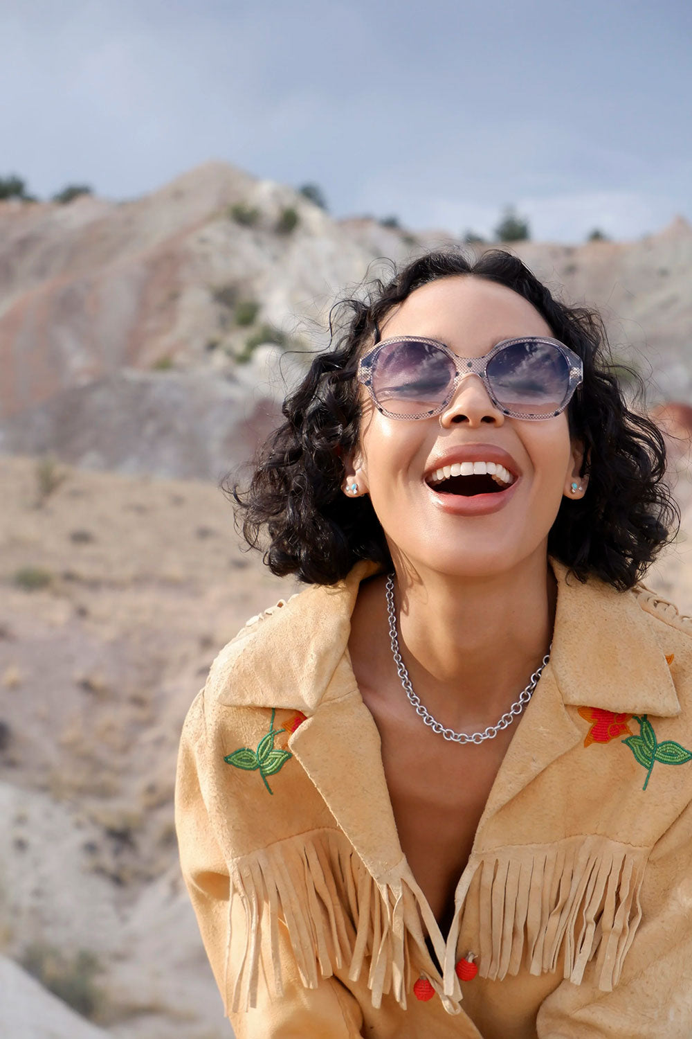 The Eva Masaki 001 frame is an updated ‘Jackie O’ style made for personal expression. Sensibly oversized and narrow through the temples, the hexagonal frame is designed to fit a wide range of face shapes. Handmade in Northern Italy from cellulose acetate by Mazzucchelli and designed with Zeiss lenses.