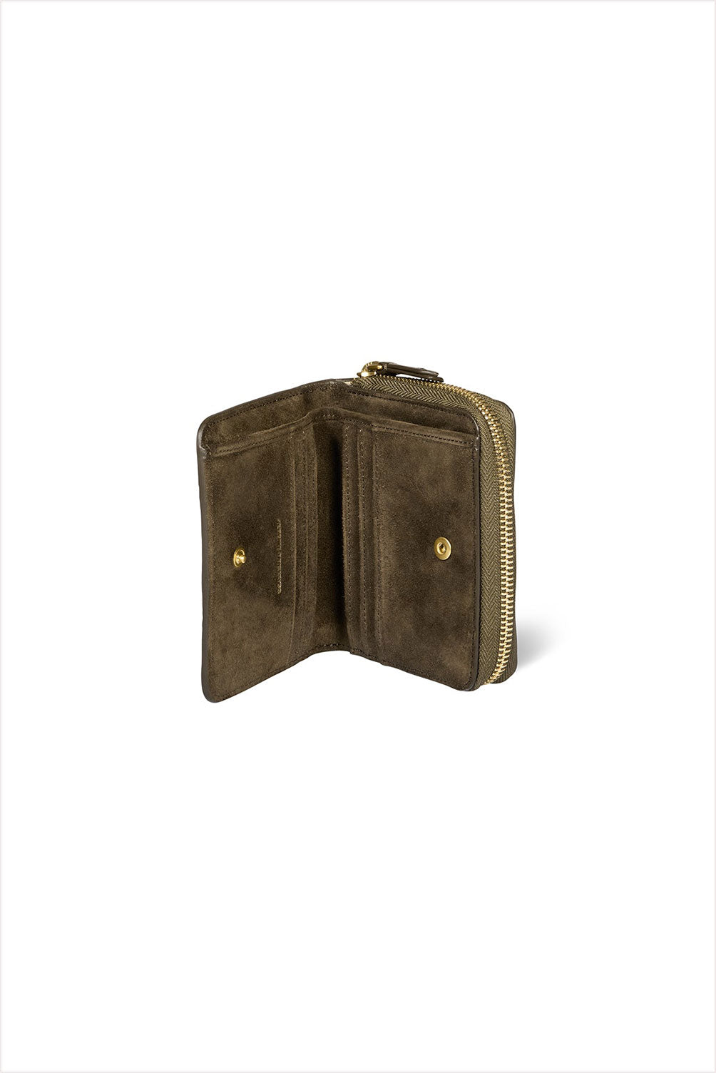 Wallet. Full-zip closure. Coin compartments with zippered closure backed by a snap-closed card compartment.