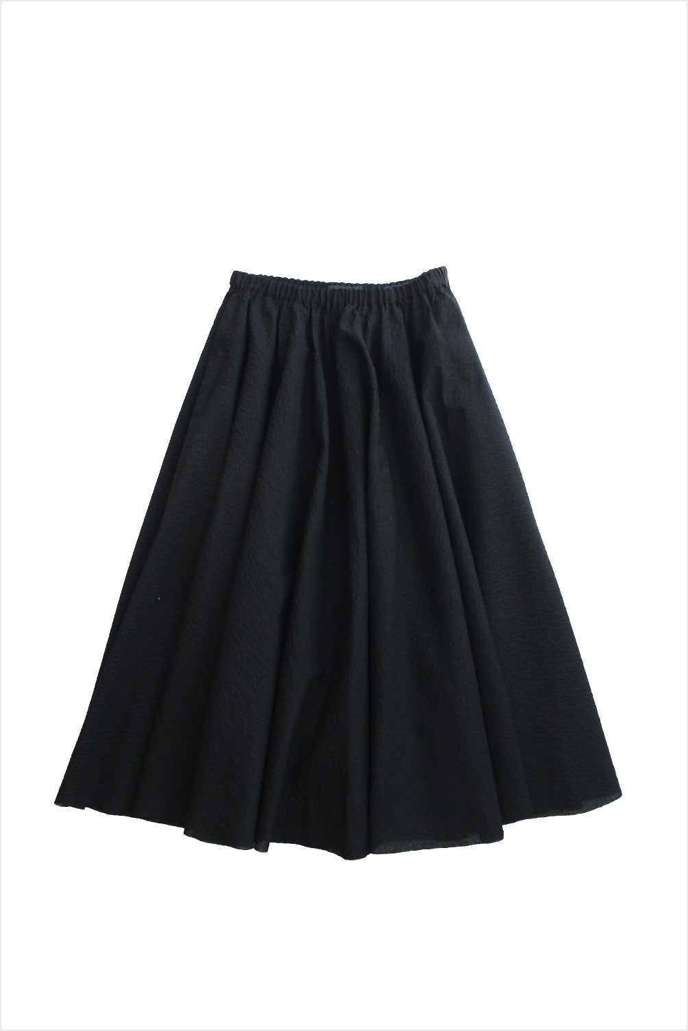 Nicely textured mid-weight cotton skirt featuring elasticated waist, unlined opaque finish and full length with hem just above ankle.