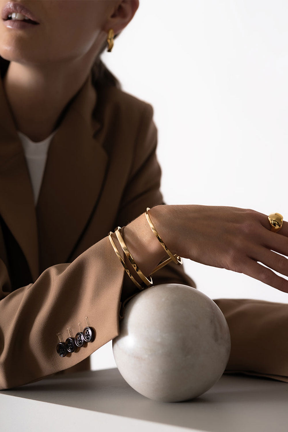 Apart Cuff was designed in 2020 by Swedish design studio Objecthood. They took inspiration from 20th century Art Deco, a style characterized by elegance and exclusivity. Perfectly depicted in this bracelet The bracelet is 50mm wide.