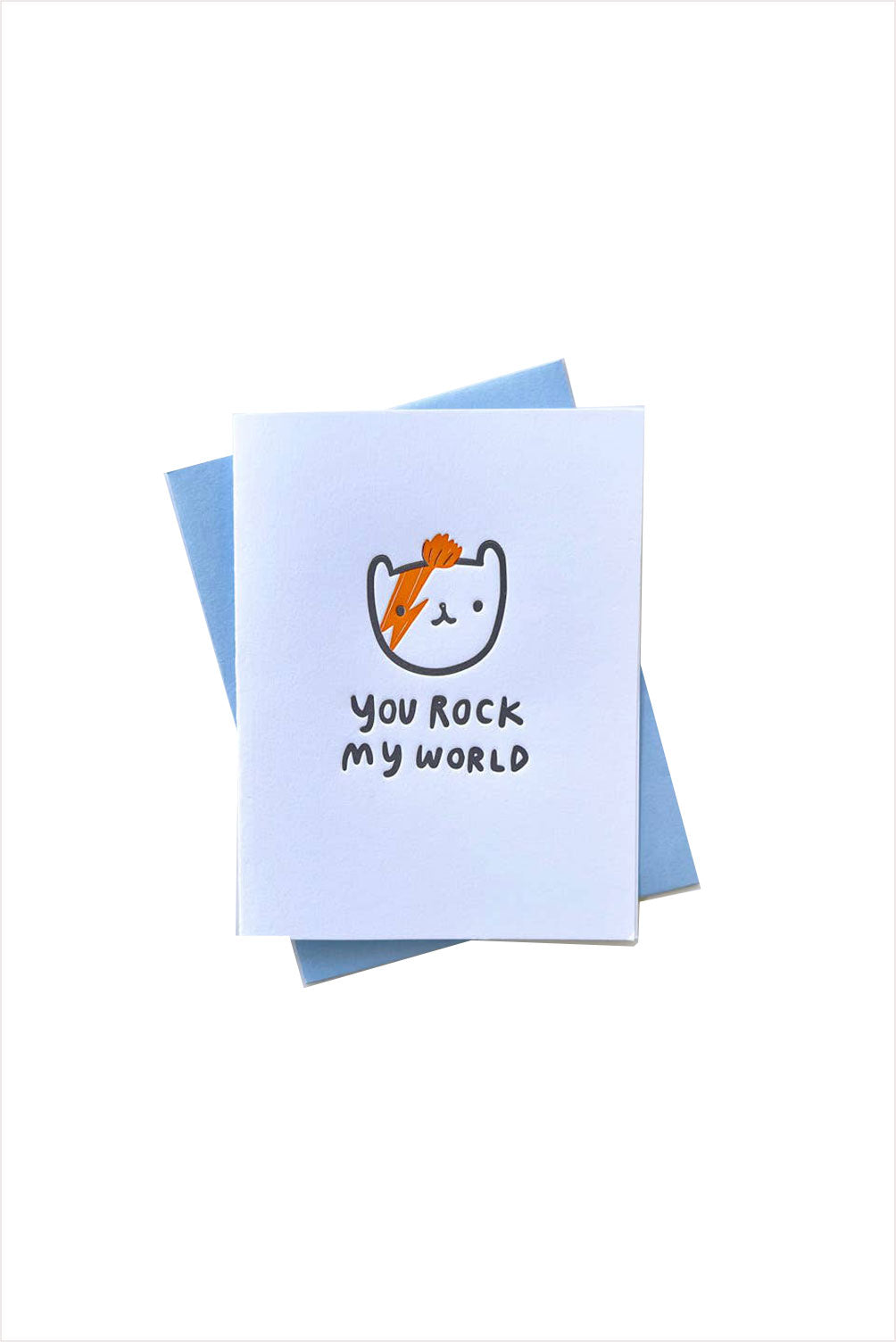 "Rock My World" card with a little ziggy stardust inspired bear. Letterpress printed on thick cotton paper and packaged with a coordinating envelope.