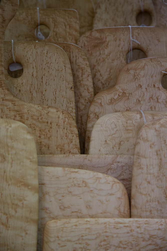Award-winning Wisconsin artist Edward Wohl is known for his masterful design, seamless joinery and liquid-smooth wood finish. He has designed a variety of limited-production pieces including these beautiful bird's-eye maple cutting boards for over forty years. Edward Wohl graduated from Washington University in 1967 with a BS degree in Architecture. His architectural background and sculptural approach are evident in the lustrous look, liquid feel, and definitive utility of his creations.