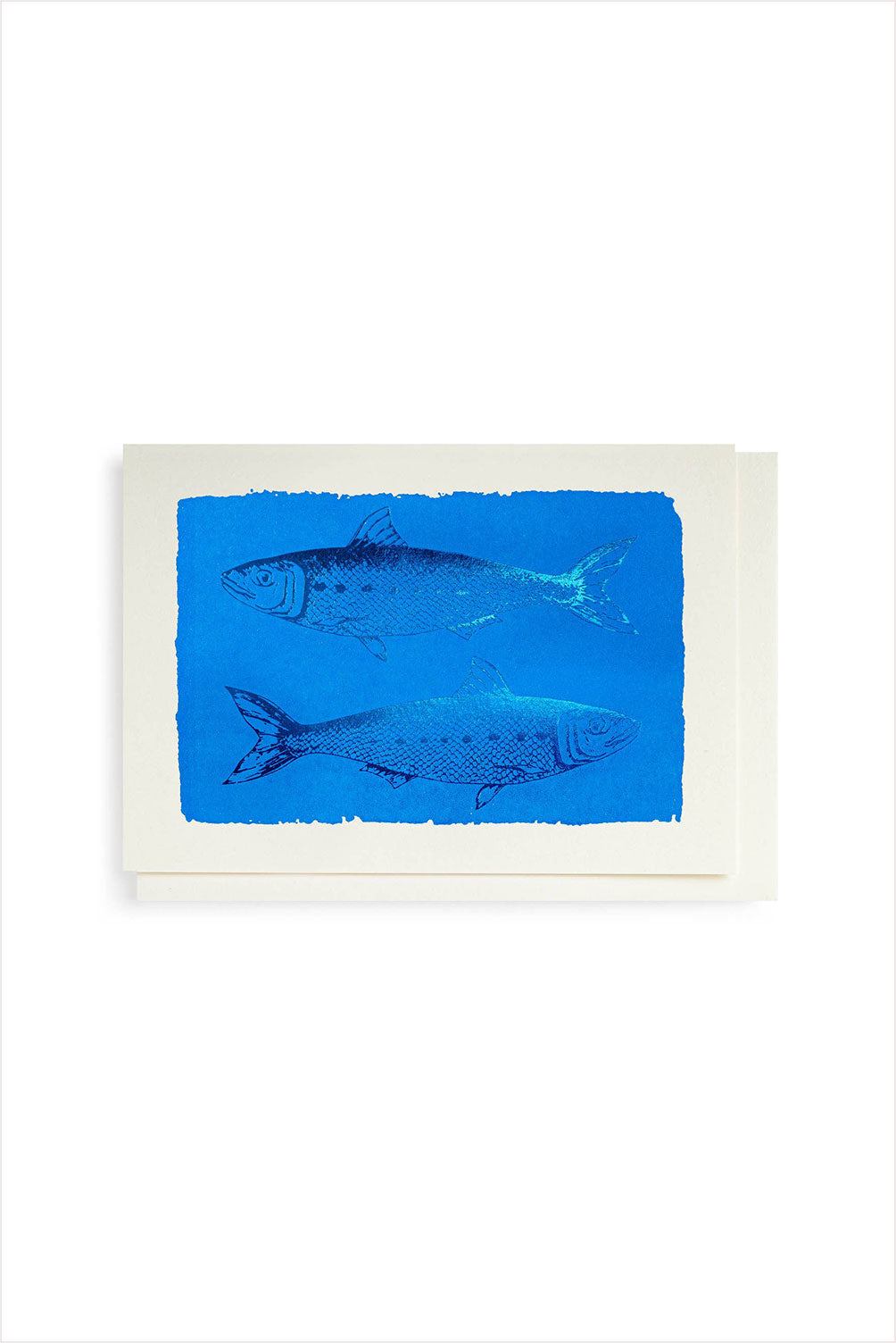 Turns out we have a thing about foil... and sardines. This blue foiled sardine design is a gorgeous addition to our usual gold foil range, a perfect wee card to send as a fish-lover, romantic gesture or as someone who just admires a beautifully printed note!