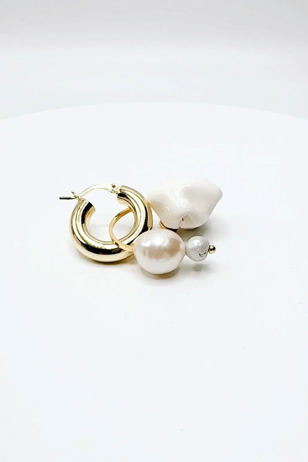 Material: Air dry Clay, Non-toxic Resin, Gold plated hoop earring, , Gold plated 925 Sterling Silver Post, Gold plated connector and balls, Natural Baroque pearl