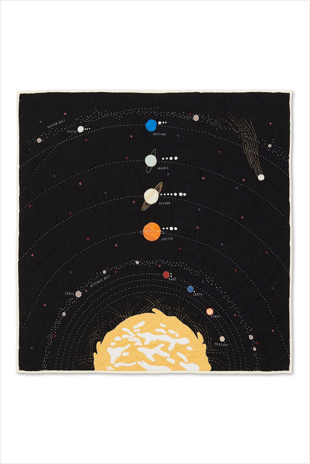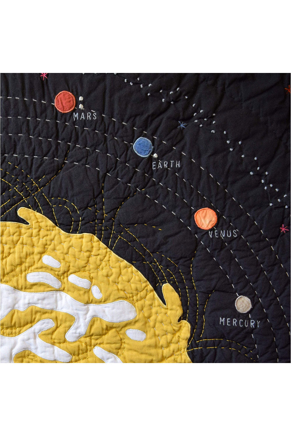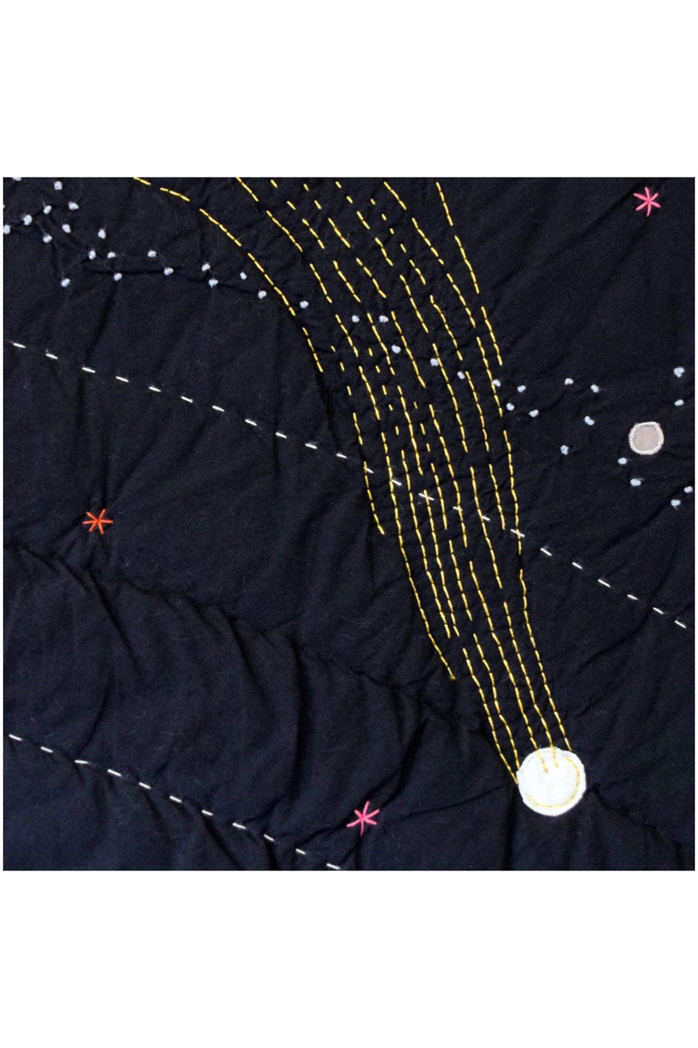 Explore the cosmos from the comfort of your home with our beloved Solar System Quilt. This captivating quilt is a celestial masterpiece, intricately designed to capture the wonder and beauty of our solar system. Each planet, from the fiery hues of Mars to the vibrant blues of Neptune, is meticulously hand-stitched, creating a vivid and tactile journey through space.