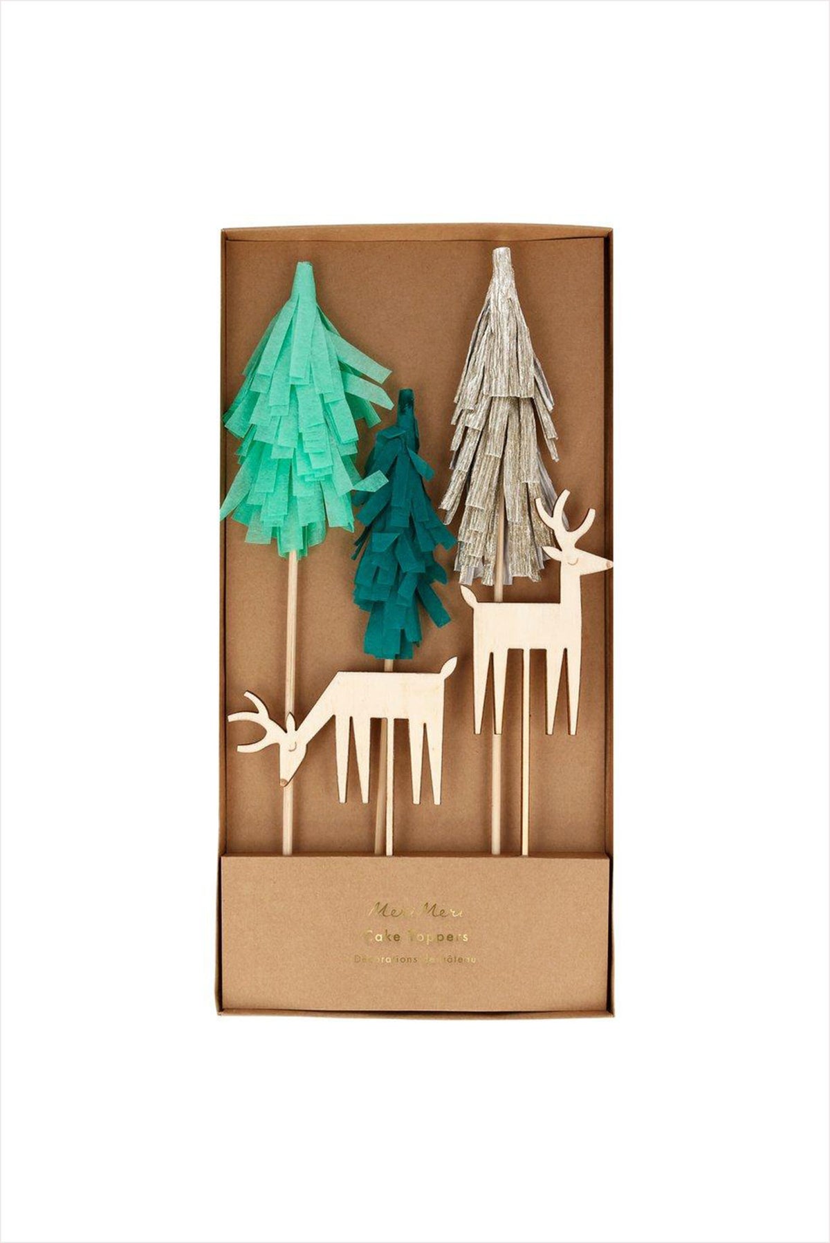 Turn any cake into a woodland delight with these beautiful toppers. They are crafted from crepe paper and etched wood and are perfect for Christmas or whenever you want to add wonderful decorations to a celebratory cake.