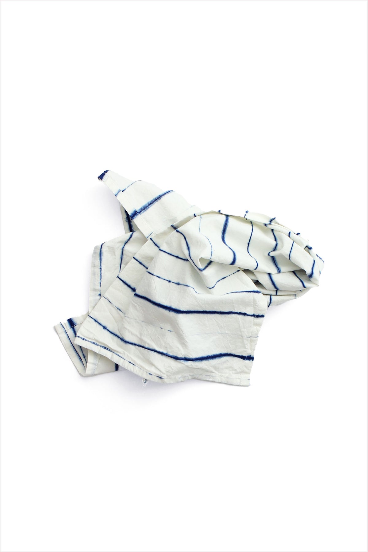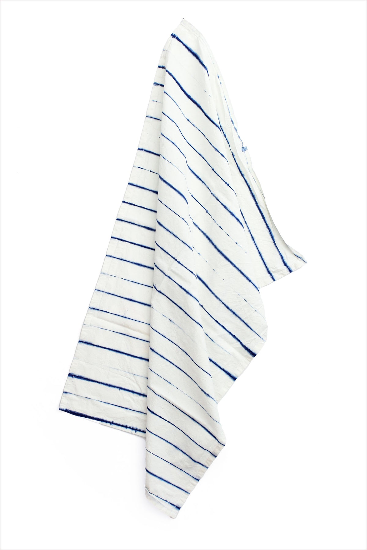 This Blot Tea Towel is perfect for everyday use. Its 100% cotton fabric, white with blue vertical lines dyed in natural indigo, provide a unique and stylish look. Crafted from natural indigo-dyed cotton, this stylish towel is a versatile asset, offering utility as a towel, a napkin, or a bread basket liner.