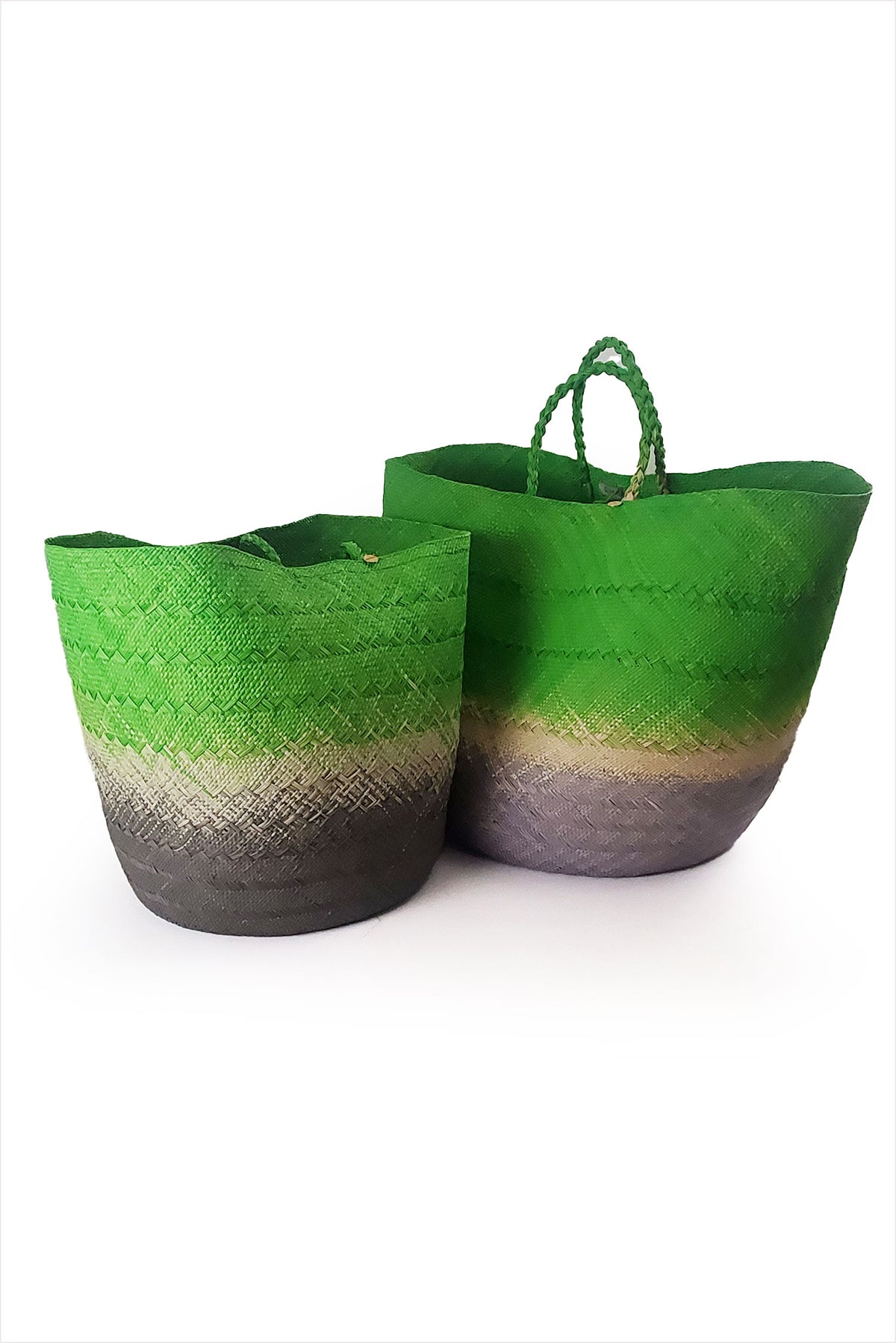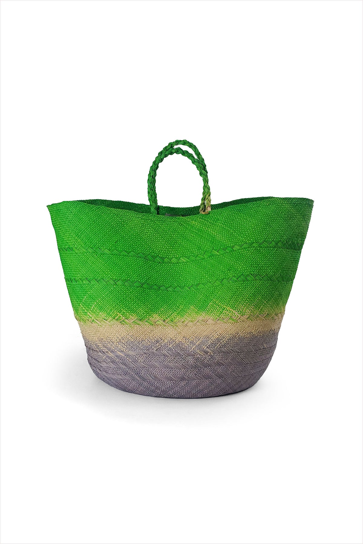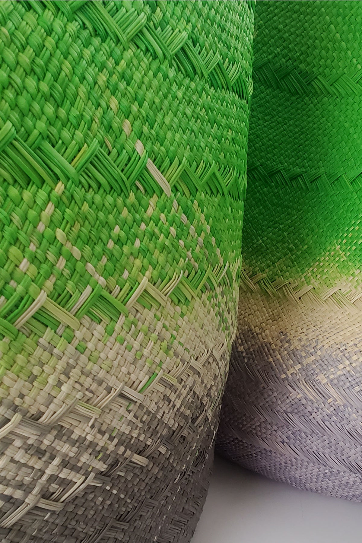 Guanábana adds a boho-chic touch to the oversized storage basket with vibrant geometric patterns designed in Madrid and hand-made by Wayuu artisans in Colombia. The xxl Canasto basket is made of fine iraca (or toquilla) straw, a natural fiber from the carludovica palmata plant, then dyed and woven by hand to create the basket design.