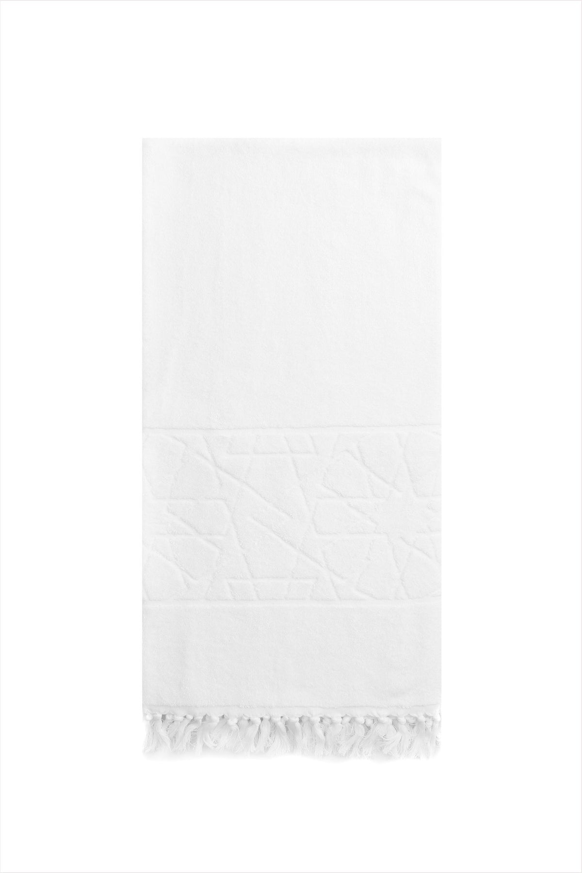 Loomed to a 650 gsm weight, these jacquard terry towels have been designed with a fringed finish.