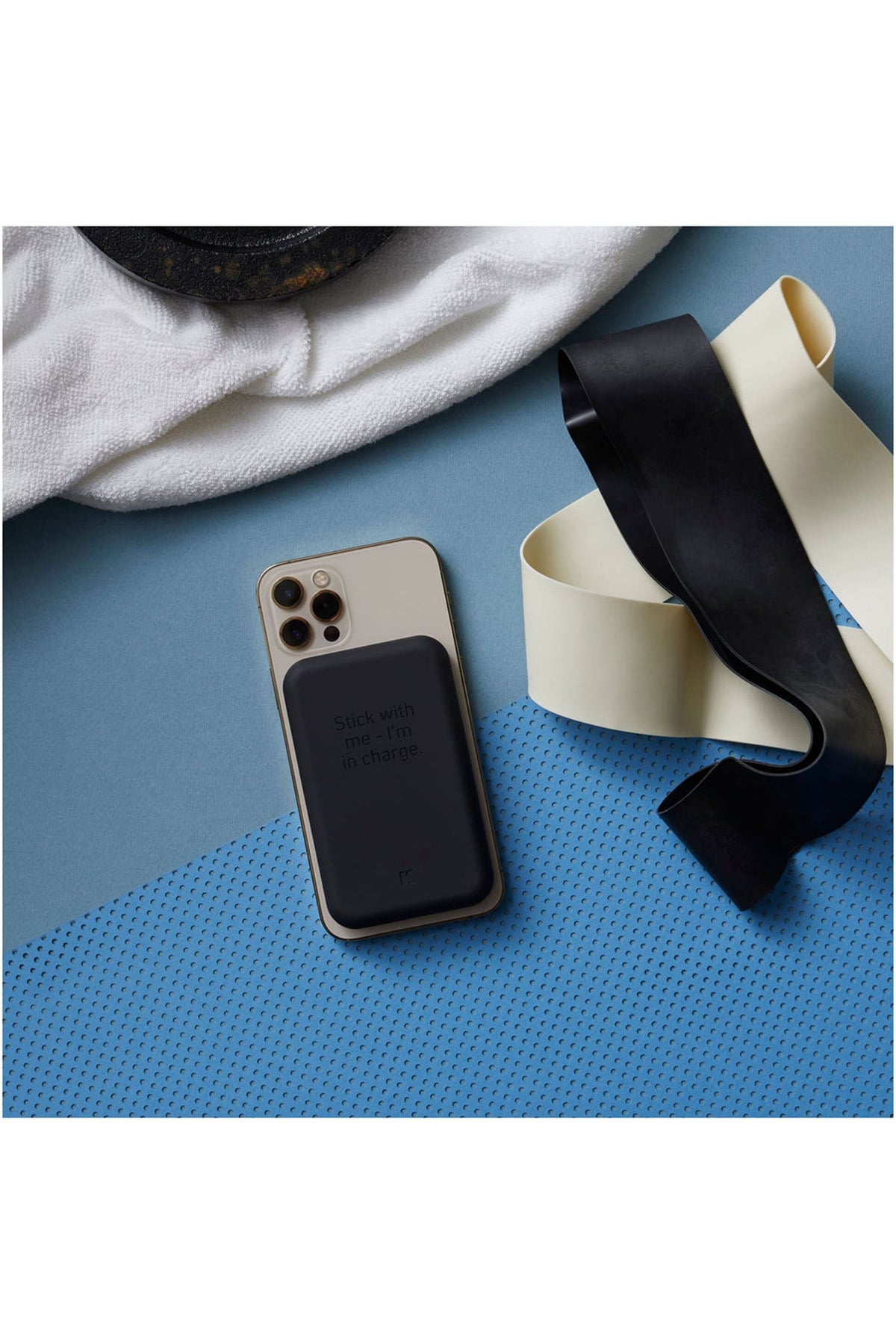 Qi wireless charging; USB-C; Power: up to 2 full charges depending on phone; 5000 mAh; 19Wh; Output: 15W. Charging time: 3- 4 hours. Charging cable included. Attaches easily with magnets for iPhone 12, iPhone 12 Pro, iPhone 13, iPhone 13 Pro. The non-slip material ensures that it can also be attached to other models. Simultaneous charging of phone and charger is possible.