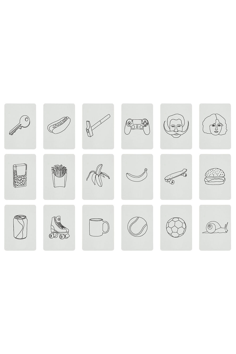 Memory game. You'll find 18 drawings to copy on blank cards (and so you form the pairs yourself). All the more fun to match. Click on "image 2" to see the packaging of the cards.