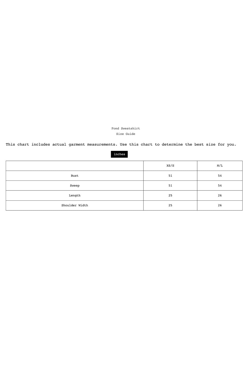 Find garment-specific size chart in photos.