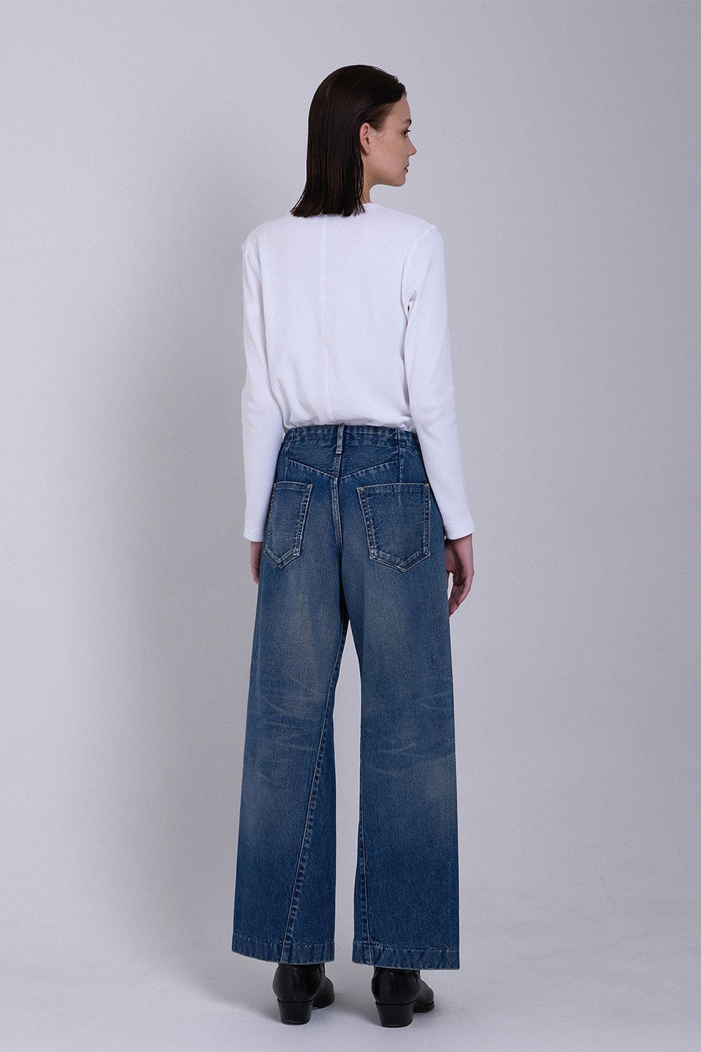 These new denim trousers from TANAKA feature twisted side seams for a three-dimensional look. Made from premium Japanese selvedge denim, they're soft and comfortable to wear. They have a slightly low waist and a wide silhouette.