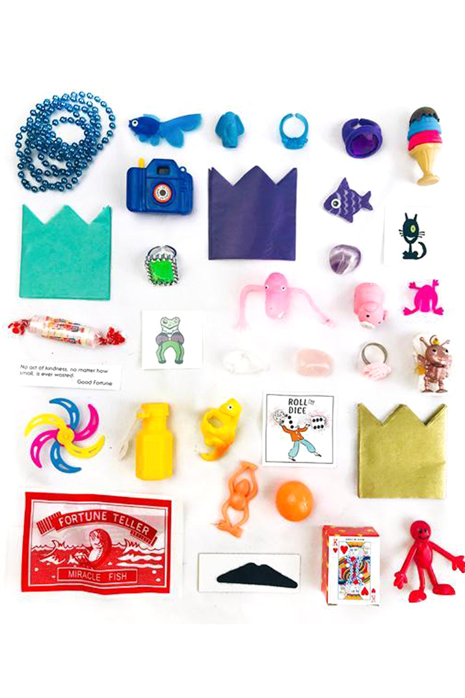 A memorable gift for all ages. Unwind a Deluxe Surprise Ball to find 11+ prizes hidden between layers of colorful crepe paper ribbons. Surprises inside vary by style & may include: vintage style toys - keepsake - charm - gem - candy - bubbles - confetti popper - fortune - gratitude questions, quote & more. Handmade by artisans in the USA.