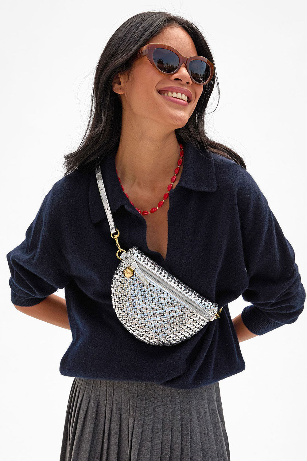 Clare V. Petite Fanny Bag Woven Zig Zag Black