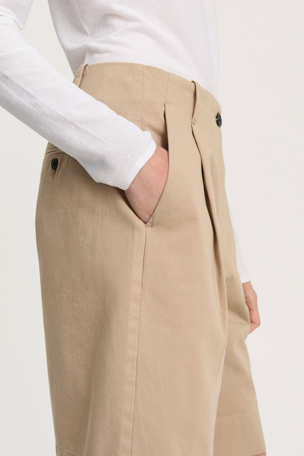 Bermuda-inspired shorts with a tailored look, made in heavy 100% organic Chetna cotton. Willy features an invisible waistband with belt loops, slanted pockets and pleat detailing. Willy comes with contrast-coloured handmade horn buttons.