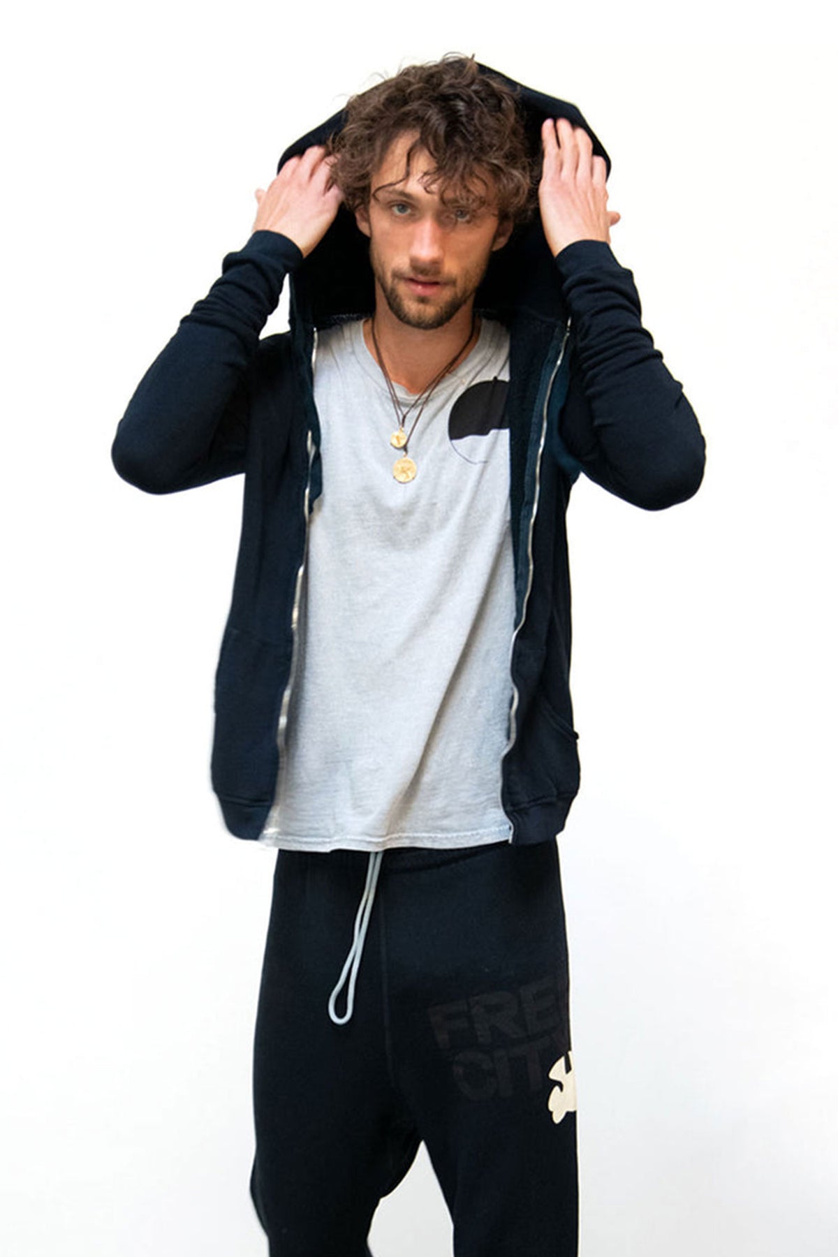 FREECITY, born in 2001, uses local factories with custom developed materials, fabrications, washes and dyes. Prints are hand-thrown, using hand-mixed paint with on-screen mixed gradients - made one by one, in small batches, as this is the only way they can be made. Each one perfectly imperfect. The final hand, customized detailing, and final home wash are all completed in our workshop in Hollywood, CA.