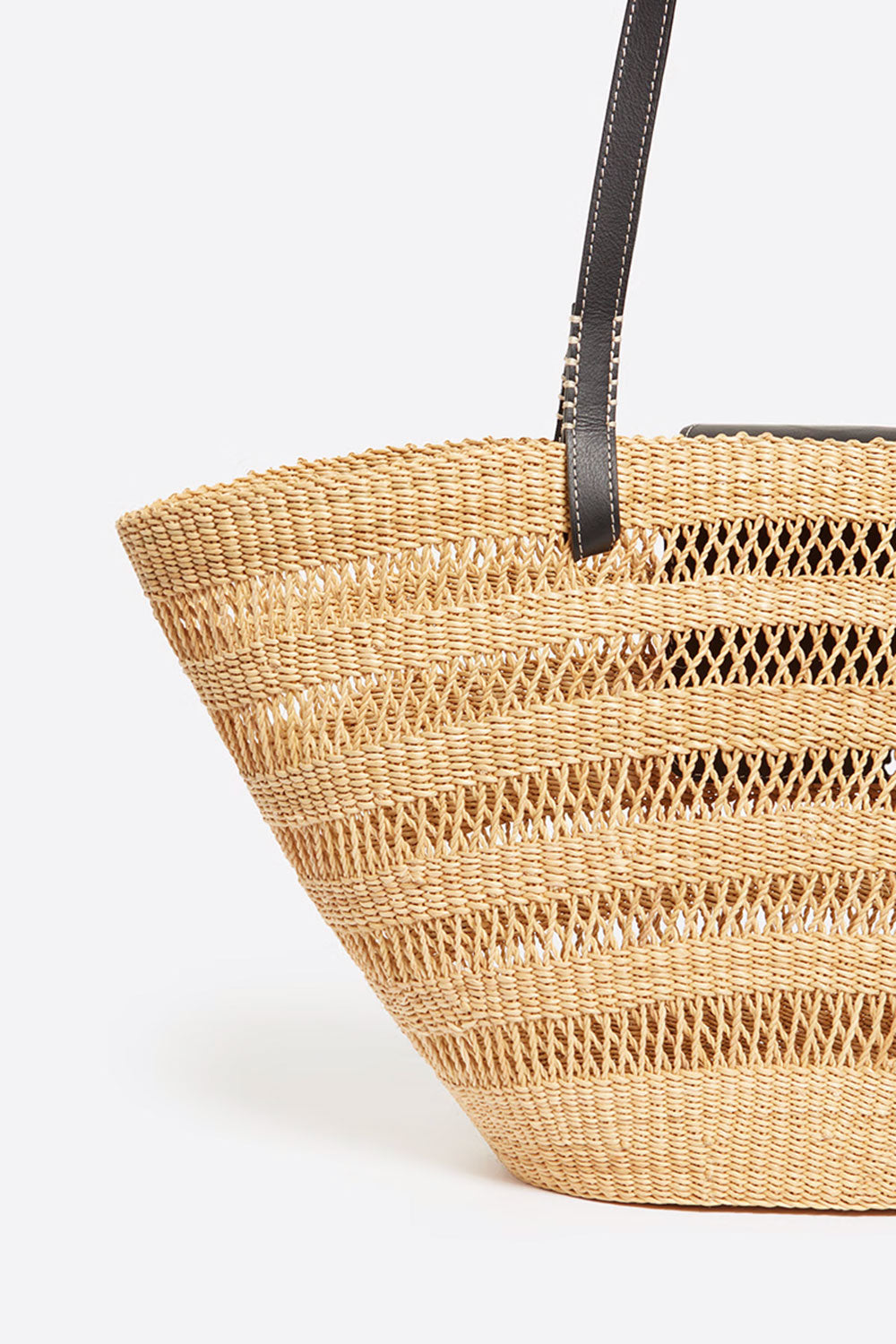 This basket, hand-woven in Ghana, combines traditional craftsmanship with modern elegance. Handmade from natural fibers, it features a fine, openwork weave that gives it lightness and sturdiness. Solid, refined cowhide leather handles add a sophisticated touch while ensuring optimum comfort. Its spacious, structured shape makes it the perfect accessory for carrying your essentials, whether for a day out on the town or a summer getaway. Versatile and timeless, this basket embodies a style that's both authentic and chic.