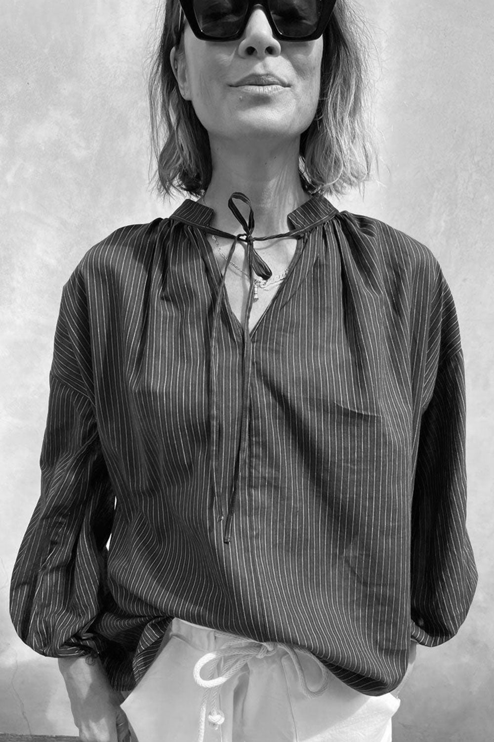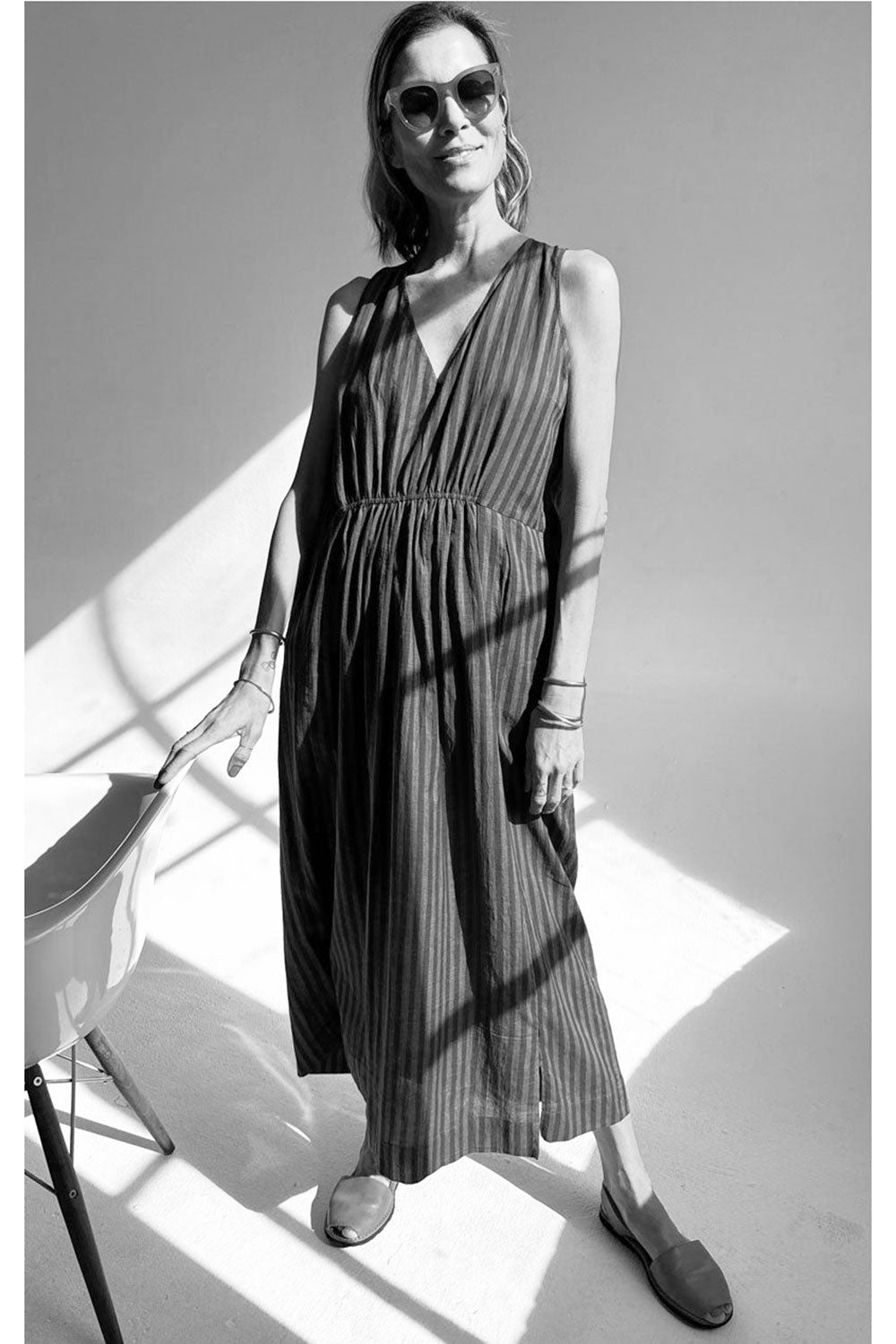 Two New York Modern Peasant Dress Khadi Blue Stripe