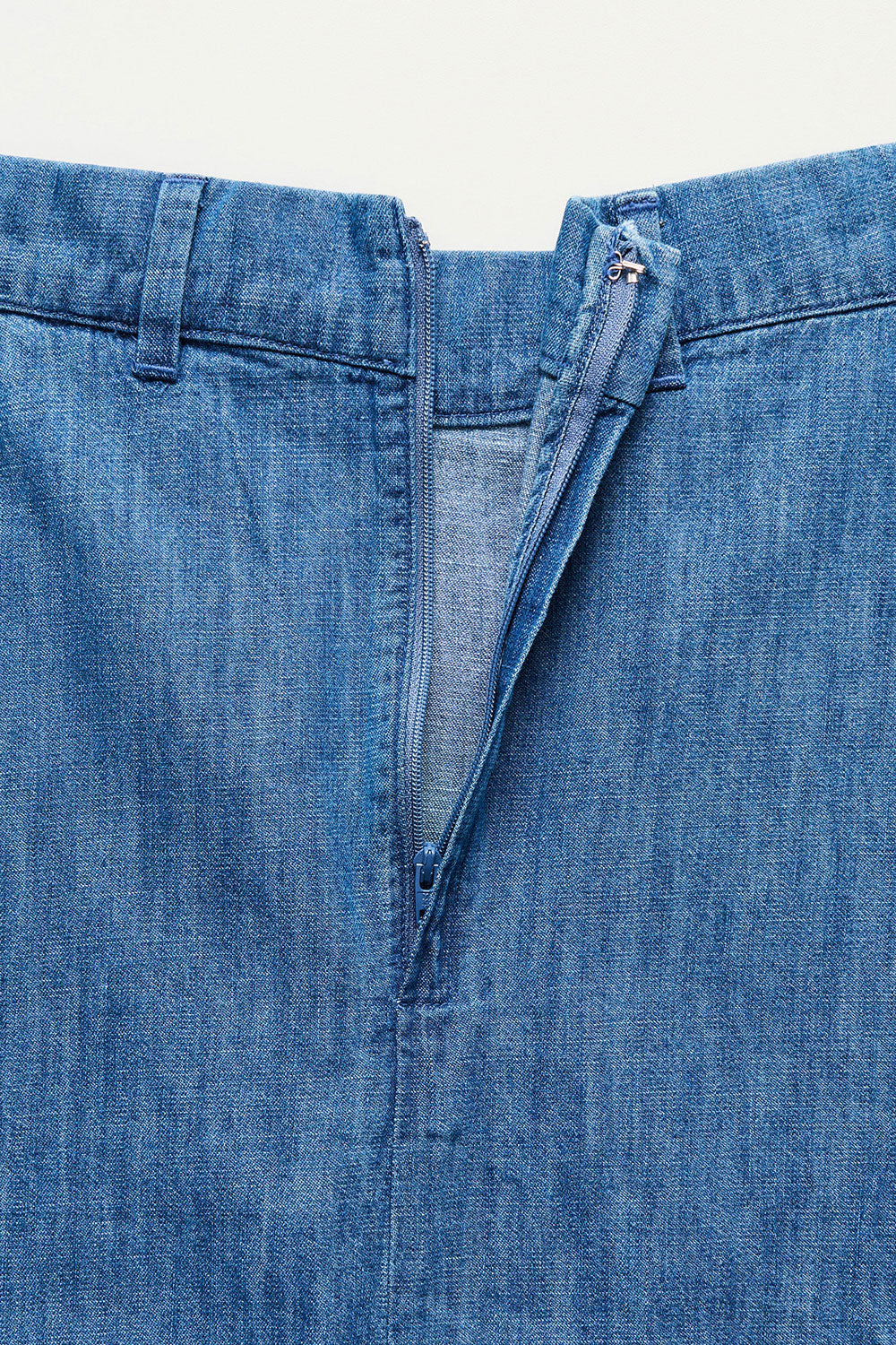 A classic A-shaped skirt with elegant volume and drape. This ankle-length skirt features slanted pockets and a hidden zip-fly closing at the side.