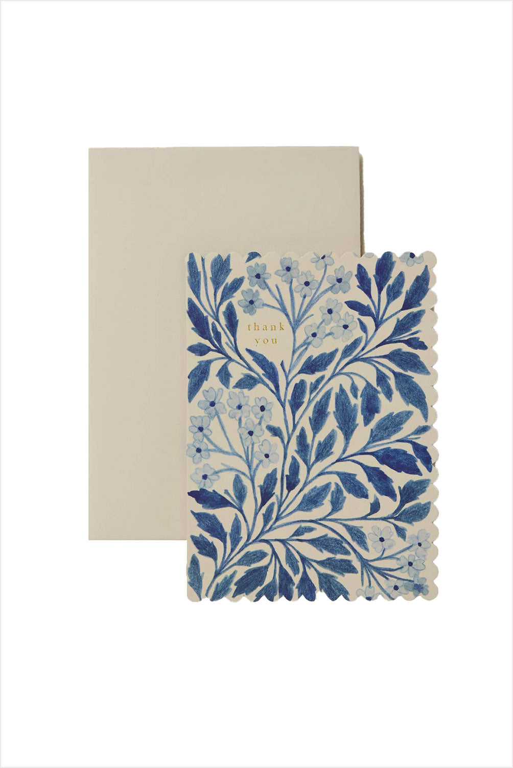 Part of our Flora collection, this card features a die cut scalloped edge and beautiful all over floral print in shades of blue.
