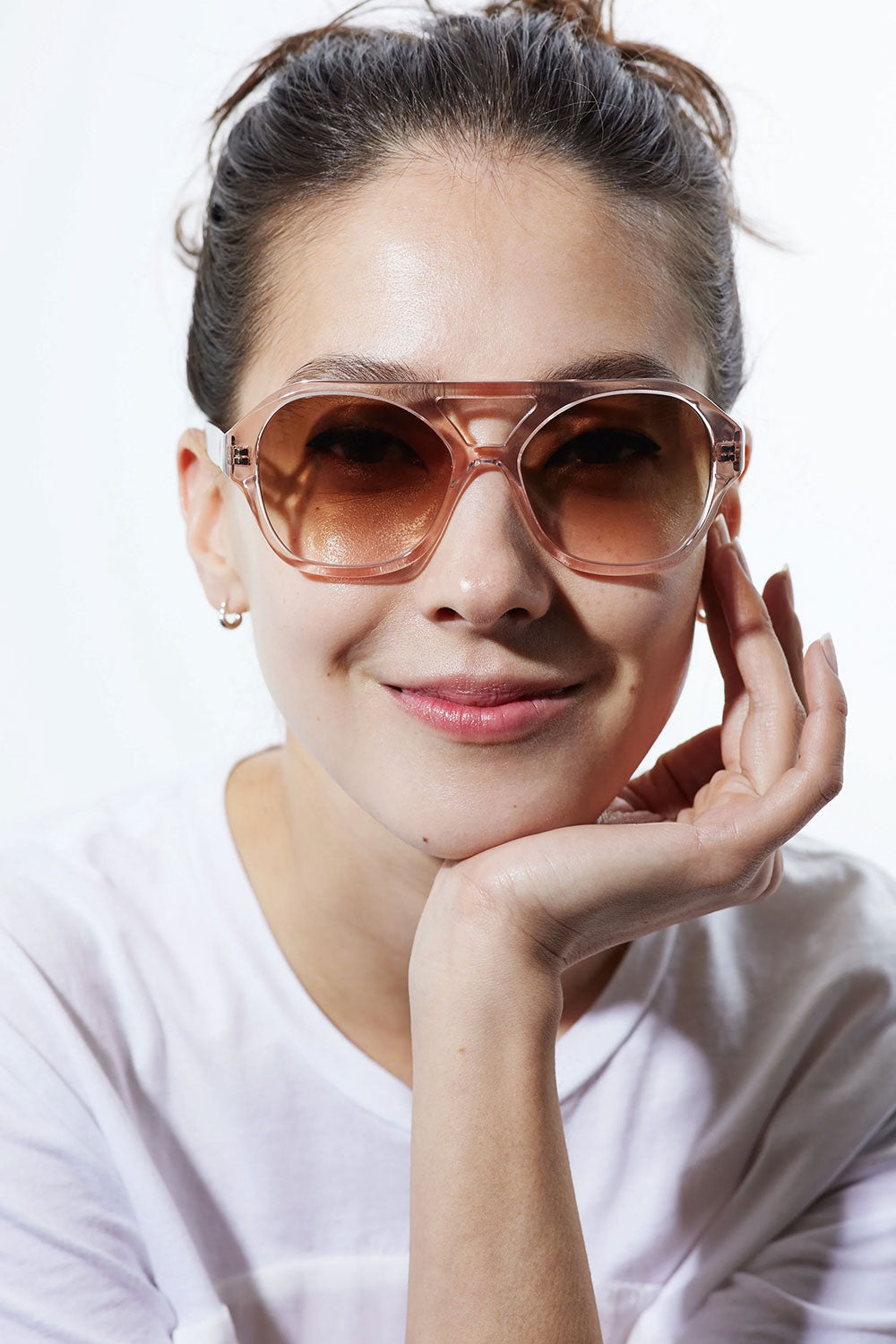 A modern aviator frame rendered fully in Italian acetate named after Eva Masaki’s mother Chiyo, who came of age as a Japanese woman living in America in the 1960s and 70s. A celebration of the name Chiyo (ch-ee-yo), meaning “one thousand generations” in Japanese, the frames are an enduring style with an updated approach. Sensibly oversized and narrow through the temples, the hexagonal frame is designed to fit a wide range of face shapes.