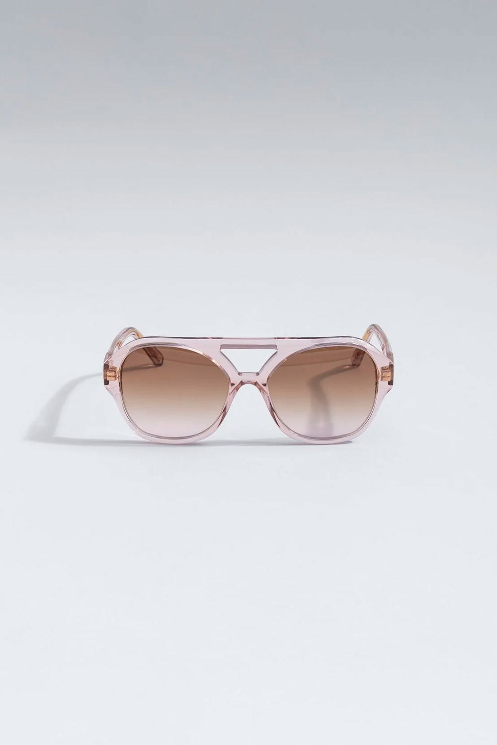 Soft, translucent rose-colored frame with hazel-pink gradient lens