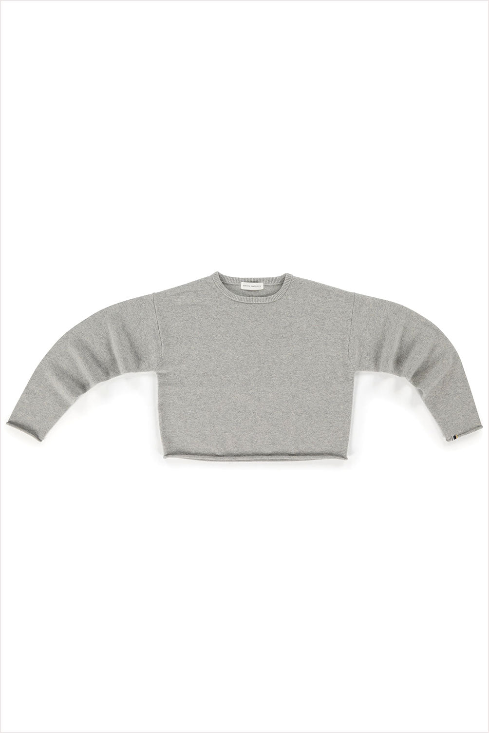 With a cropped, boxy silhouette, the comfy sweater elevates your everyday with the luxurious warmth of mid-weight cashmere. A ribbed crewneck, rolled-edge hem details and extra long sleeves complete this casual style.