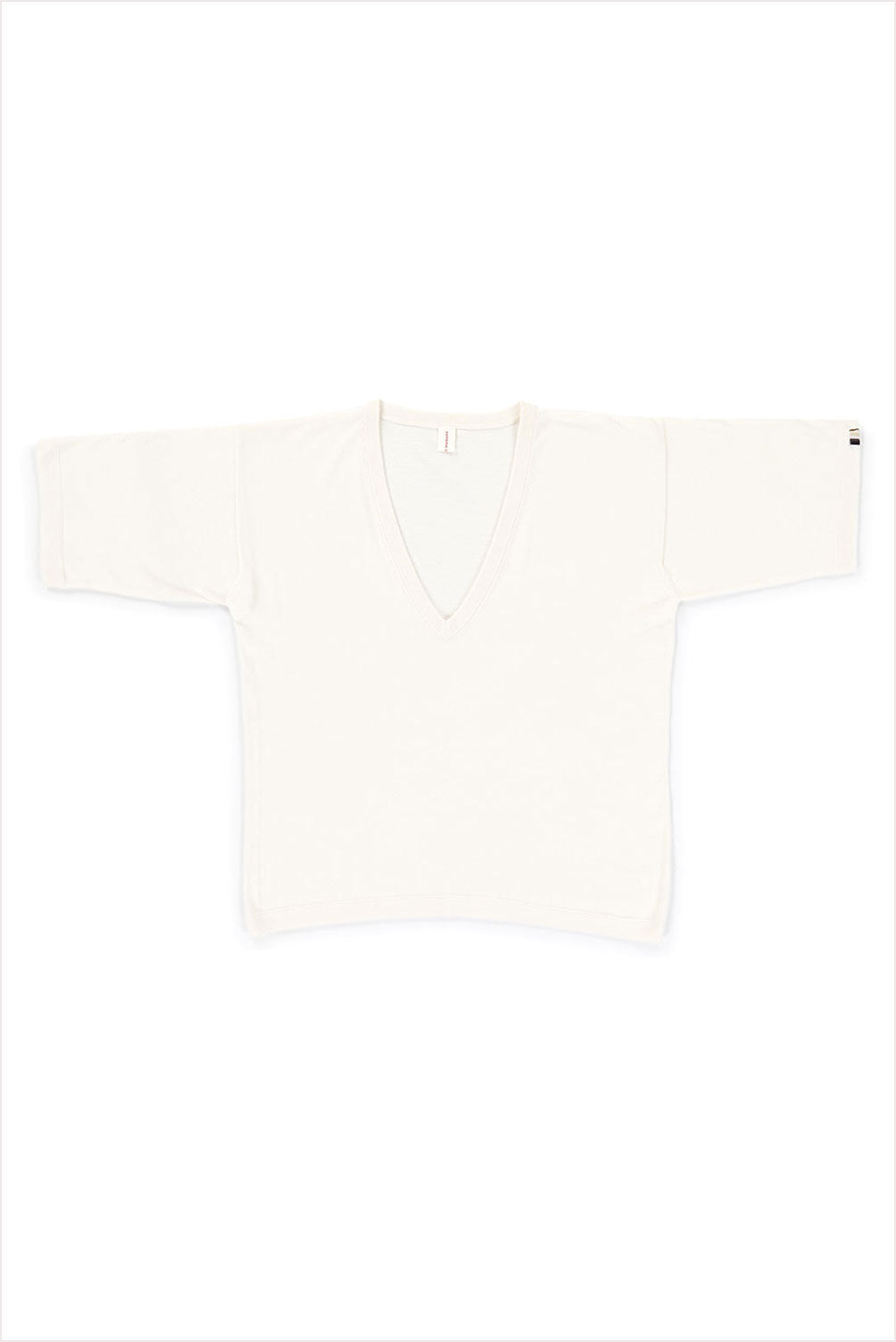 Oversized, boxy short-sleeved t-shirt with a super deep v-neck in cotton-cashmere.