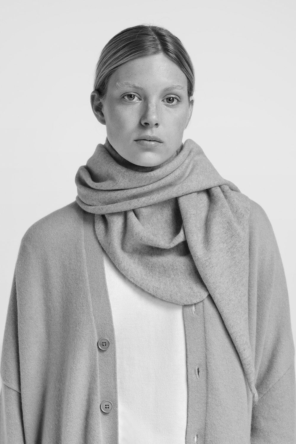 After washing, dry the garment flat on a towel. Iron at low temperature, using a damp cloth between the iron and the cashmere. Store the garment folded in a drawer or on a shelf.