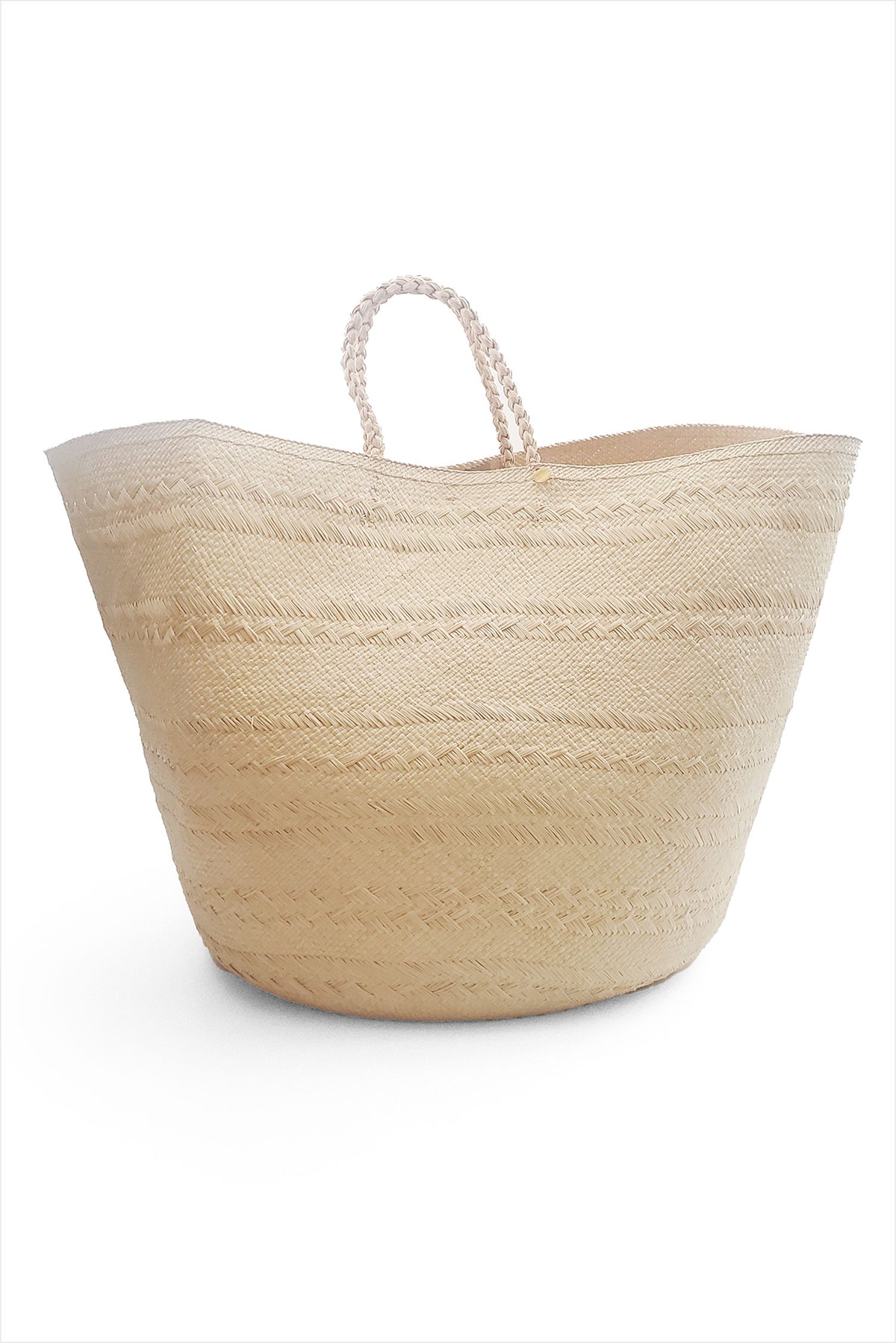 Guanábana adds a boho-chic touch to the oversized storage basket with vibrant geometric patterns designed in Madrid and hand-made by Wayuu artisans in Colombia. The xxl Canasto basket is made of fine iraca (or toquilla) straw, a natural fiber from the carludovica palmata plant, then dyed and woven by hand to create the basket design.
