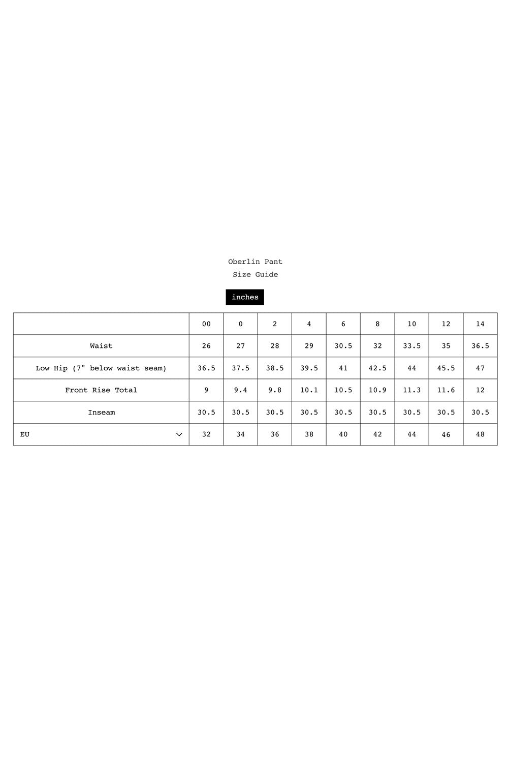 Find garment-specific size chart in photos.